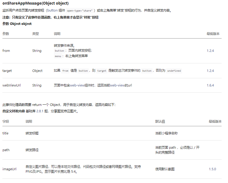 会有一个默认的数据转发出去,title为当前小程序名称,path为当前页面的路径,