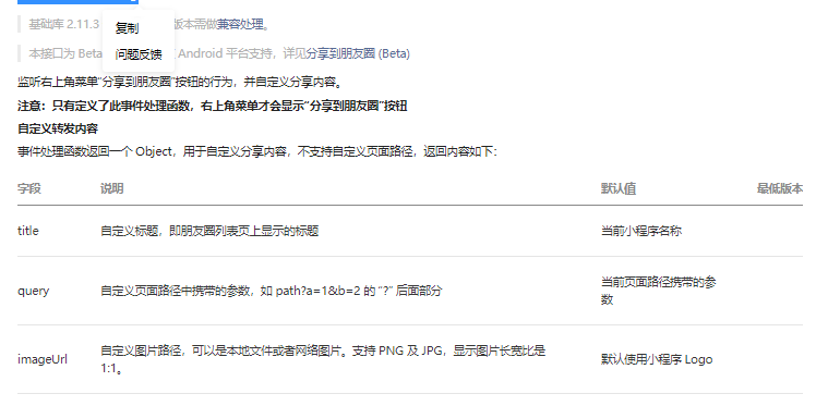 - 显示“分享到朋友圈”按钮时必须同时显示“发送给朋友”按钮,显示“发送给朋友”按钮时则允许不显示“分享到朋友圈”按钮