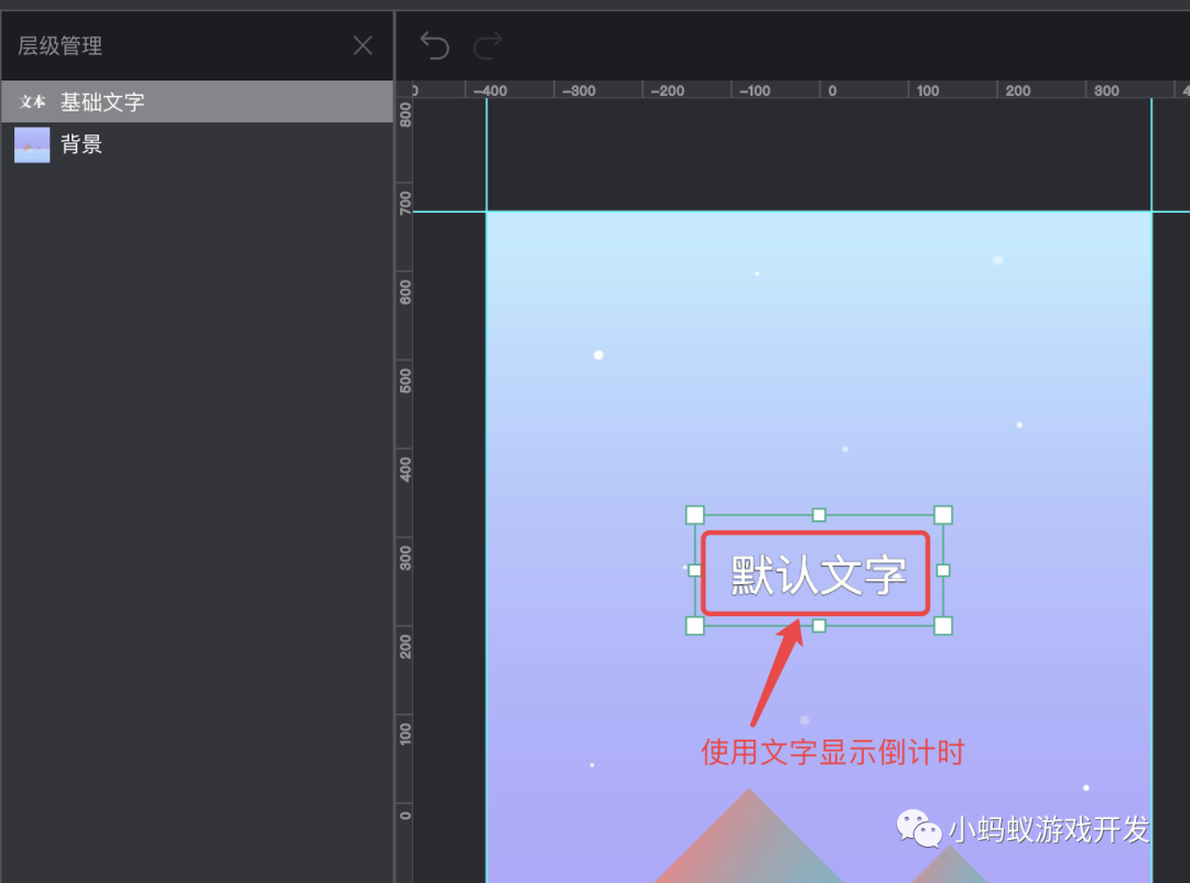 如图的场景中,只有一个背景,以及一个基础的文字,我们将会使用基础的文字来显示倒计时。