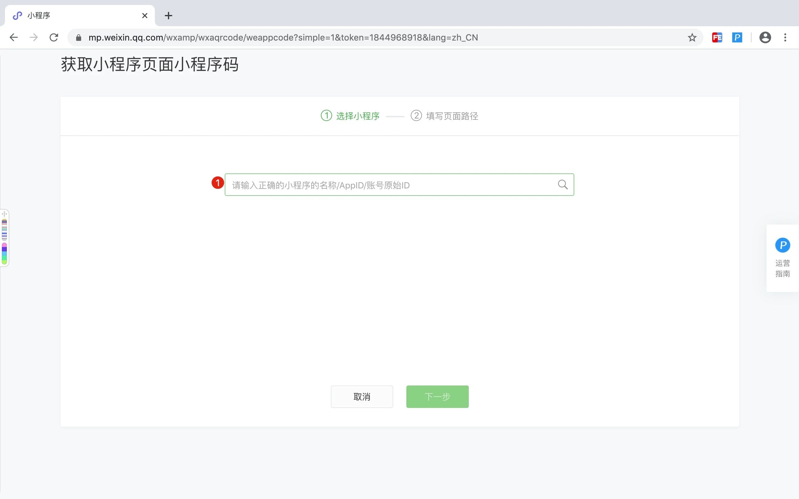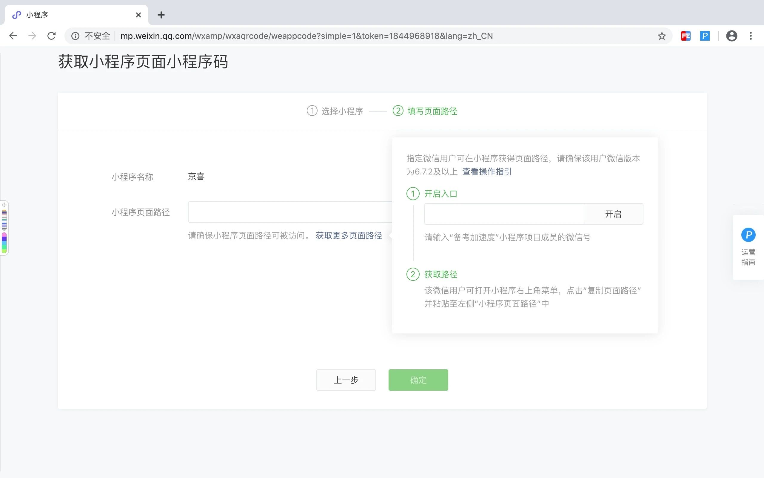 第二步,输入要生成小程序码的小程序名称,比如这里输入京喜