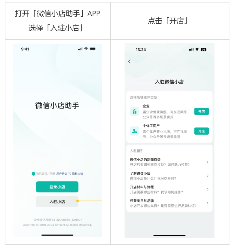 1)移动端:下载“微信小店助手”APP进入开店流程。