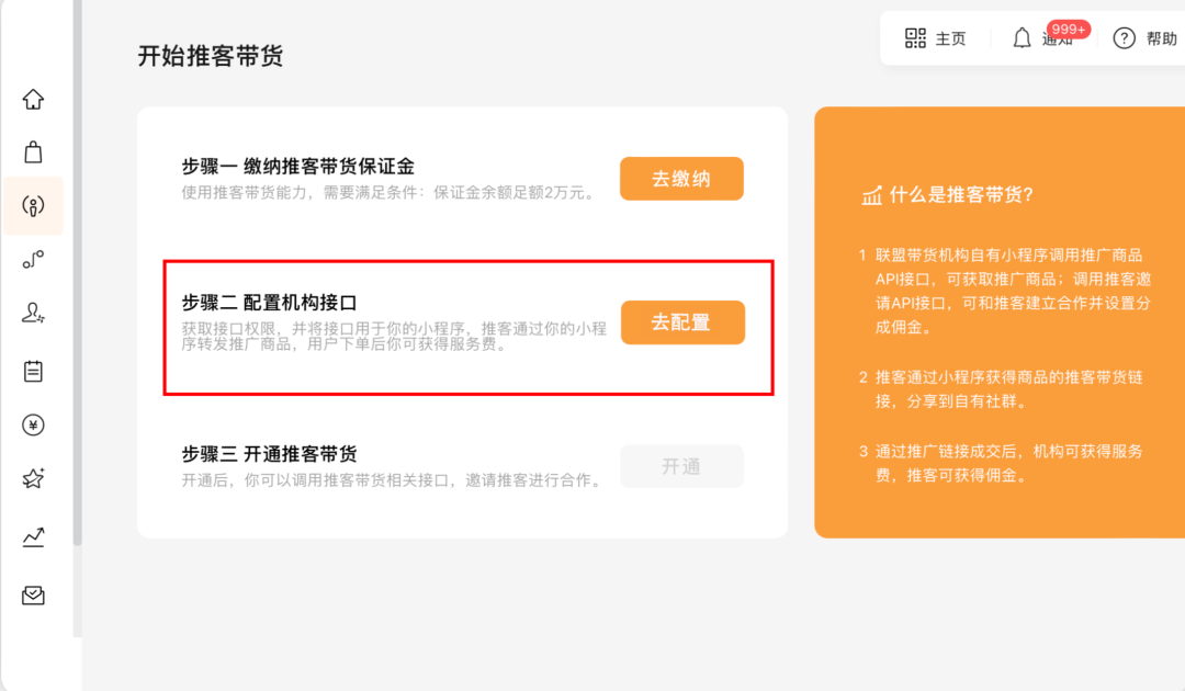 第三步:开通后,机构基于推客带货功能相关接口进行开发小程序和组织带货。