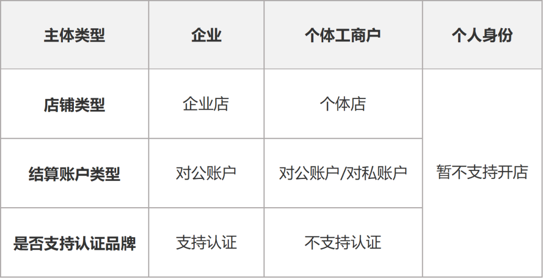 企业店铺:营业执照类型为企业,营业执照、法人身份证件、超级管理员身份证件、对公银行账户,若有品牌资质,还需准备商标注册证、品牌授权书。