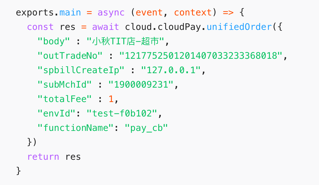 上图里面pay就是发起支付的云函数,根据需求修改。