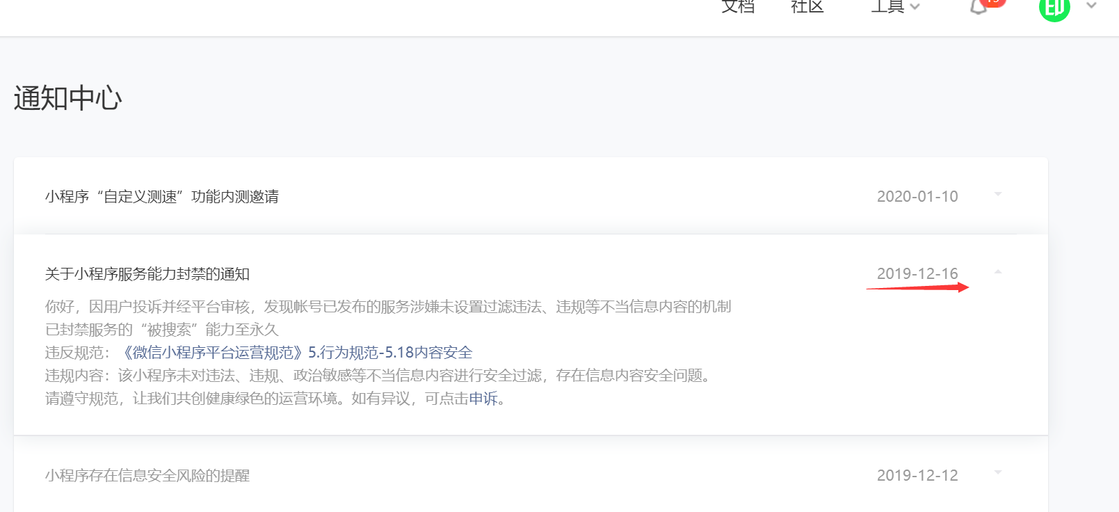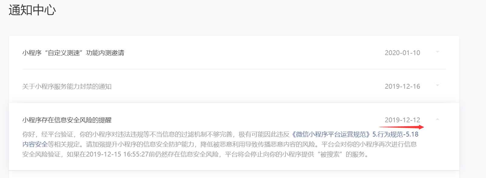 说我们的小程序是违规了行为规范5.18《微信小程序平台运营规范》5.行为规范-5.18内容安全