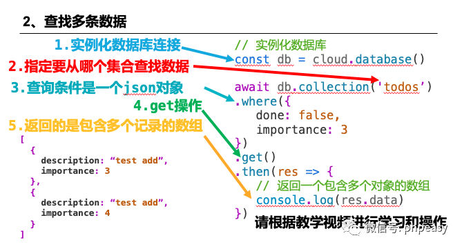 下面我们将学习如何通过云函数从云数据库中查找多条数据
