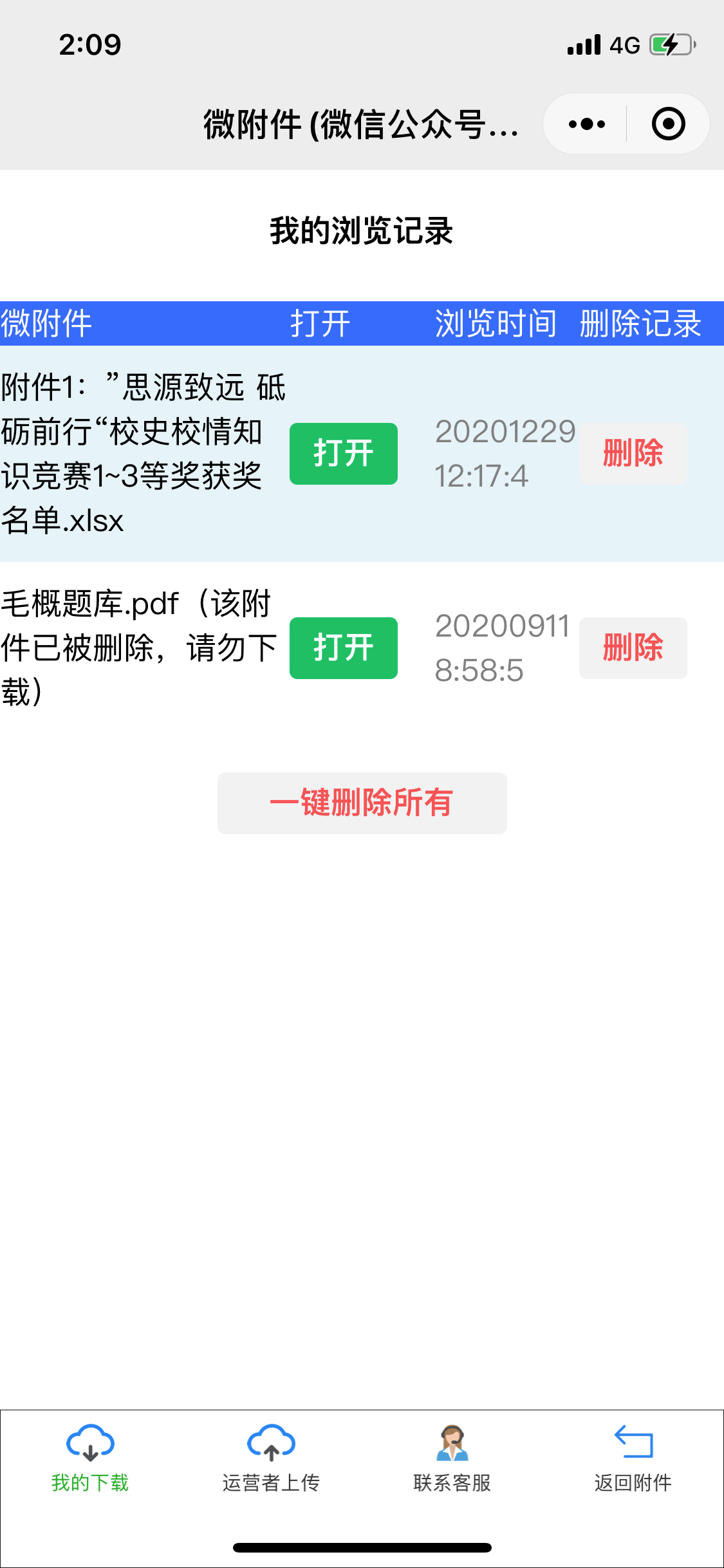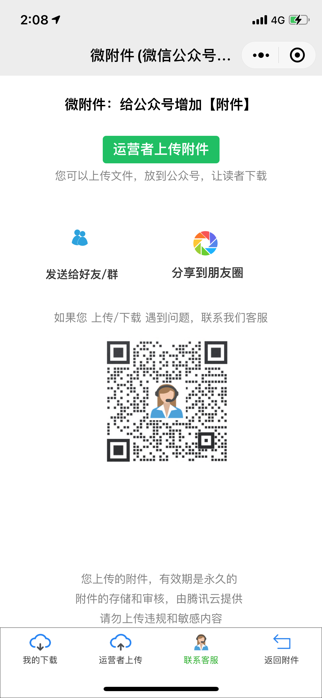 微附件这个小程序主要提供公众号上传附件使用,通过这种形式可以让用户直接看到附件 内容,