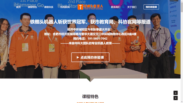 成立 4 年来,迅速发展为安徽省内知名的青少年机器人教育机构,已累积服务学员超 10000 人次。教育成绩上,机构培养众多学员站上 RoboCup 机器人世界杯竞赛的舞台,保持着机器人世界杯赛事 7 连冠、参赛学员获奖率 100% 的不朽战绩。 作为铁榔头机器人教育重要的品牌营销阵地,与单一的线下品牌推广相比,网站集合课程安排、品牌背书、新闻动态于一体,更新效率更高、传播范围更广。