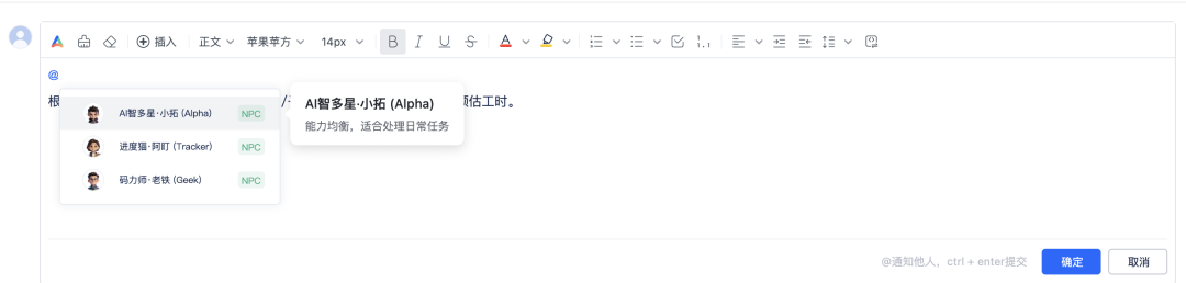 在评论框输入 @ 符号,选择你的NPC伙伴
