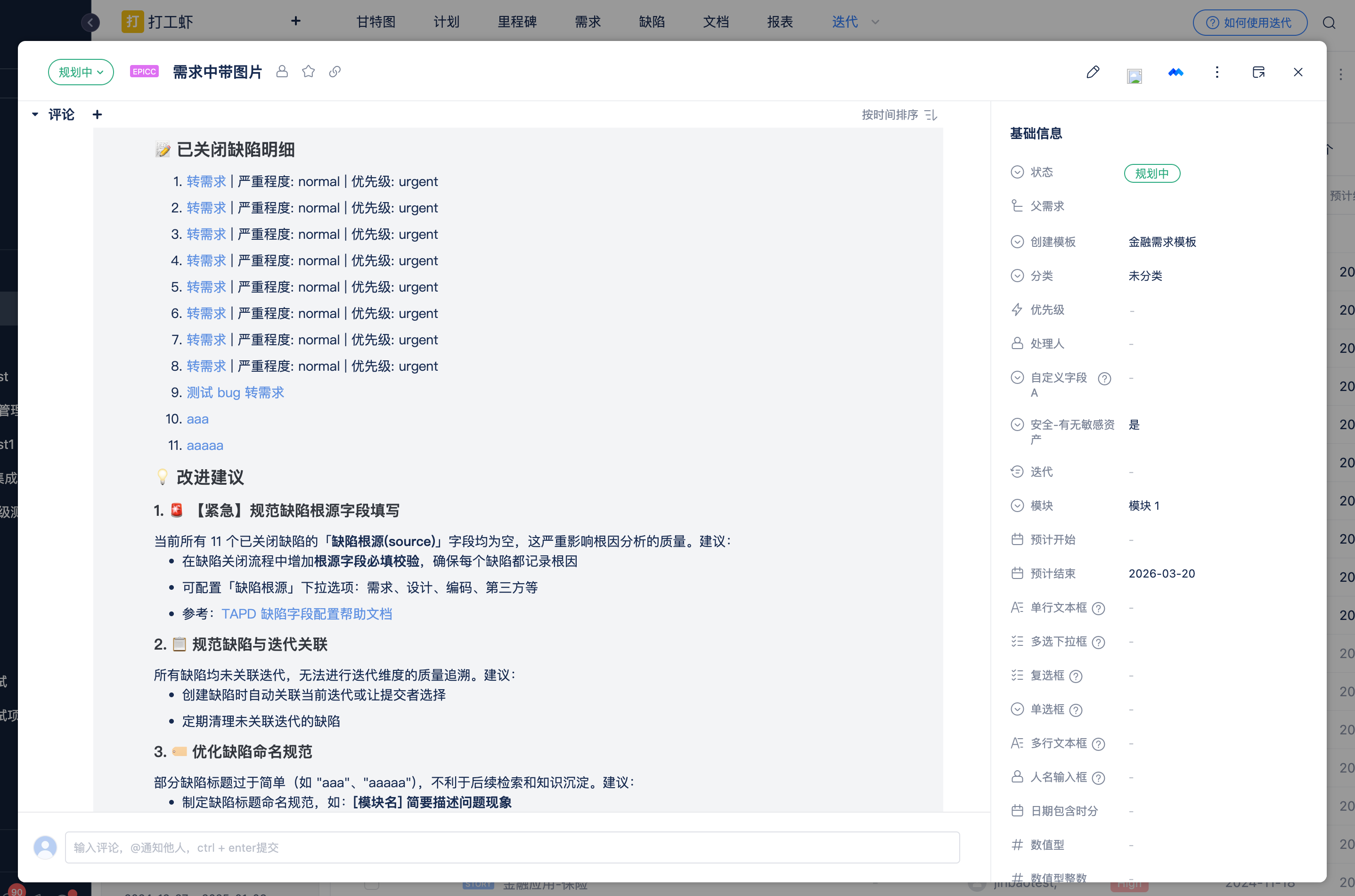 @AI智多星-小拓 分析当前迭代所有已关闭的 bug,按根因分类(需求变更/设计缺陷/编码错误/第三方问题),给出改进建议