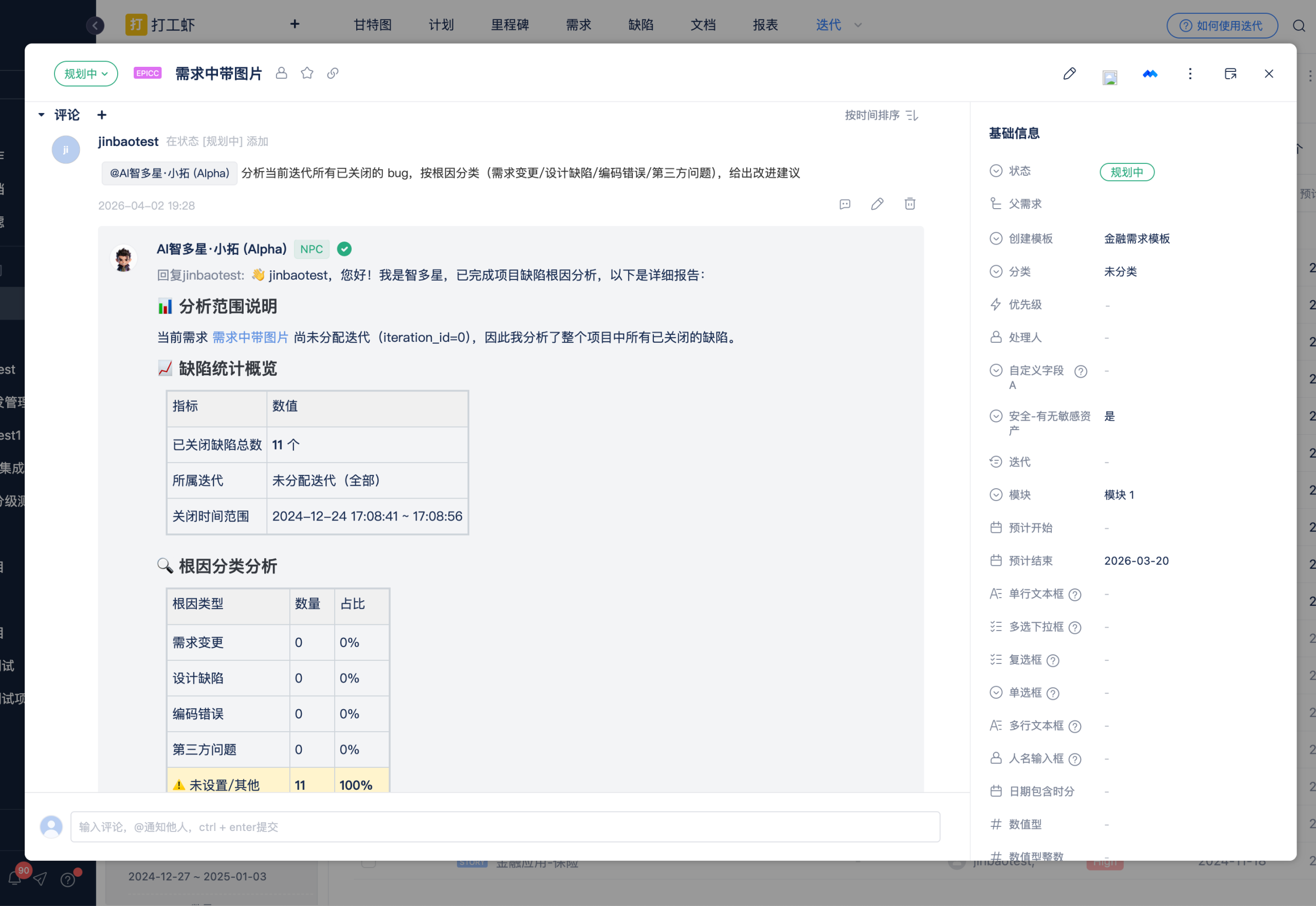 真实场景:一个迭代出了 10几个 bug,Leader 想知道"这些 bug 到底是什么原因导致的?是需求不清晰还是代码质量问题还是第三方依赖?"只能凭感觉。