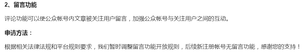 1)2018年3月以后注册的公众号都无法开通留言功能,读者之间不能互动交流,最基本的交流基本为零。