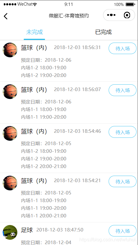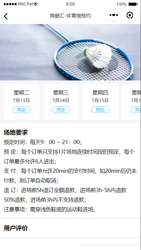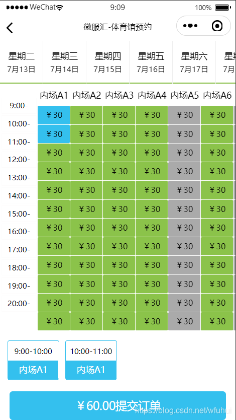 点击预约日期进入选择场地和时间,点击确定下单支付