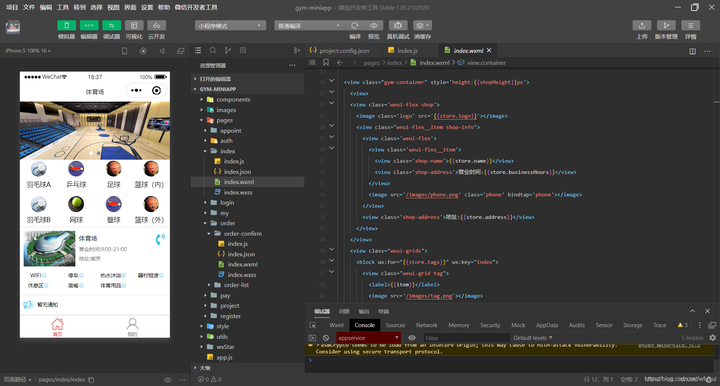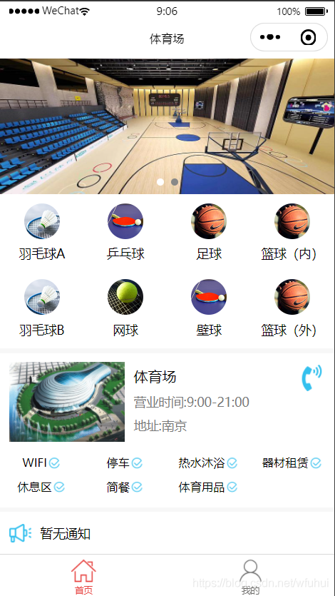 首页显示轮播图,项目分类,以及场馆介绍