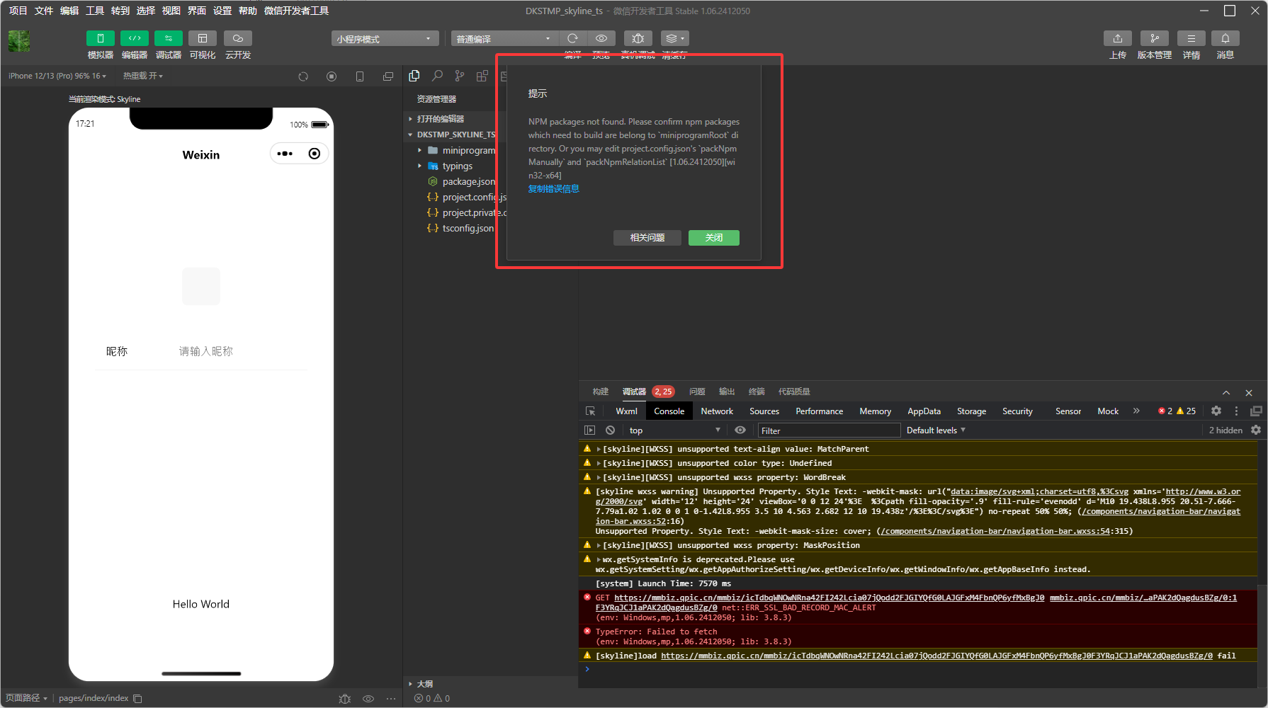 首先,我用开发工具创建了一个skyline+ts的项目: