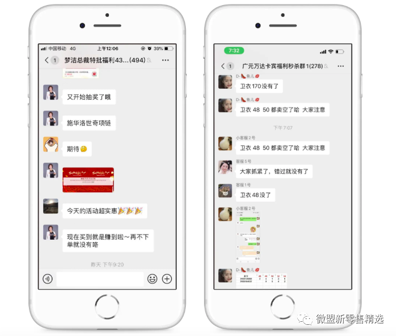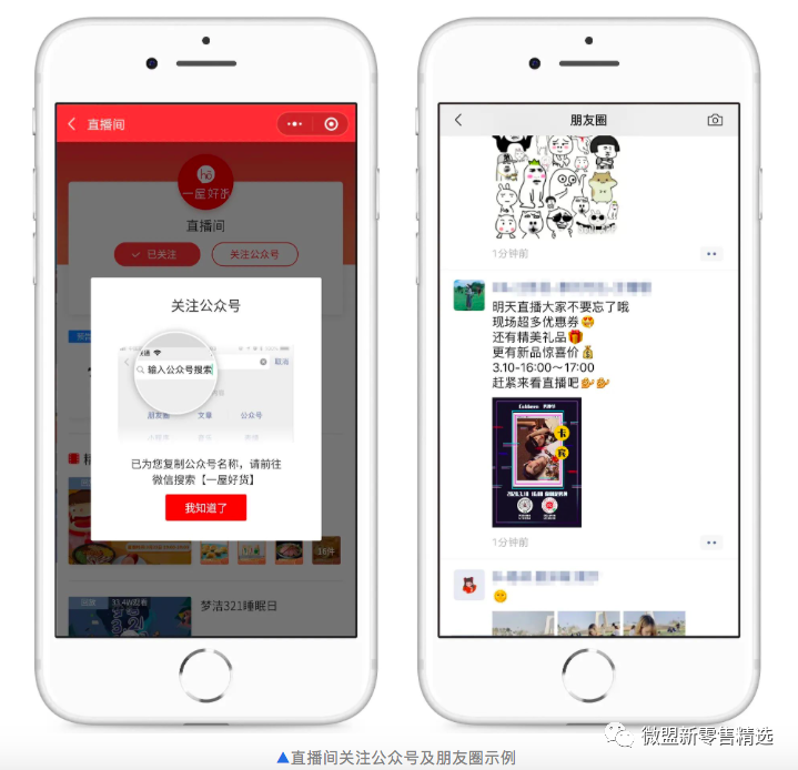 在直播活动前后,导购既可以通过转发带导购参数的活动介绍、商品详情等到朋友圈预热,引导用户关注,又可以借力个人IP号创建微信社群,通过针对VIP社群赠送限时优惠码等形式,进一步刺激用户购买下单。