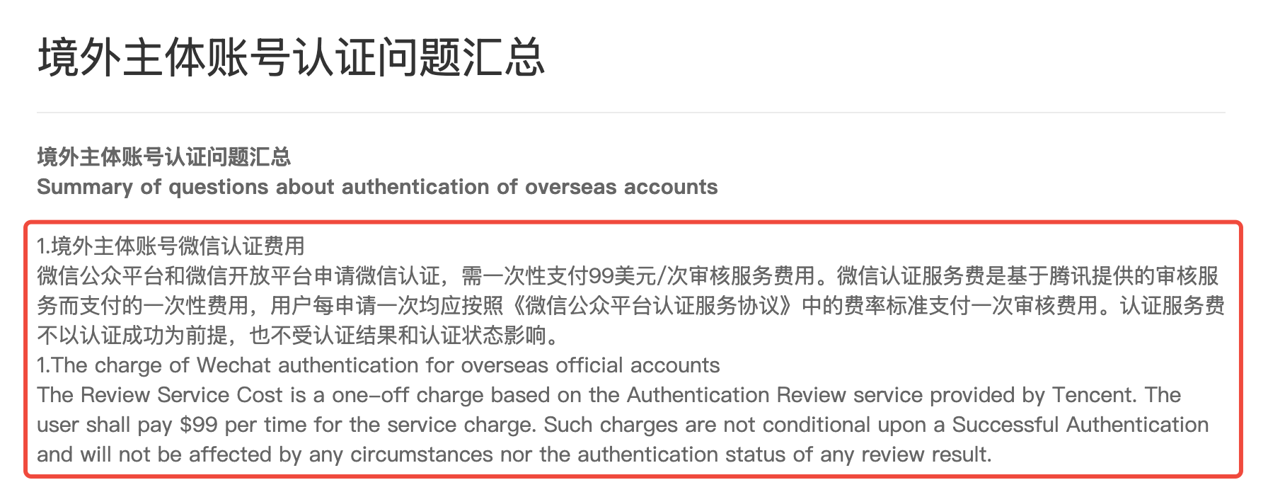 2.5.1 境外主体注册公众或小程序需要支付多少认证费用?