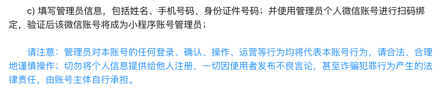 海外主体的小程序管理员可以和公司法人不同,但注意管理员对于账号的任何行为都代表本账号行为,由账号主体承担,因此切勿将个人信息提供给他人注册。