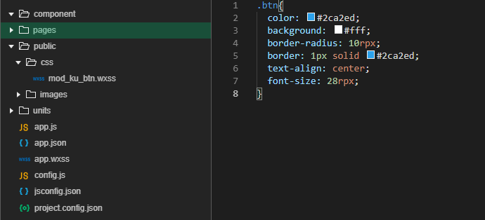 公共样式根据上面的目录结构我是放在public里的css里,每个文件命名好说明是哪个部分的模块化,比如下面这个就表示一个按钮的模块化