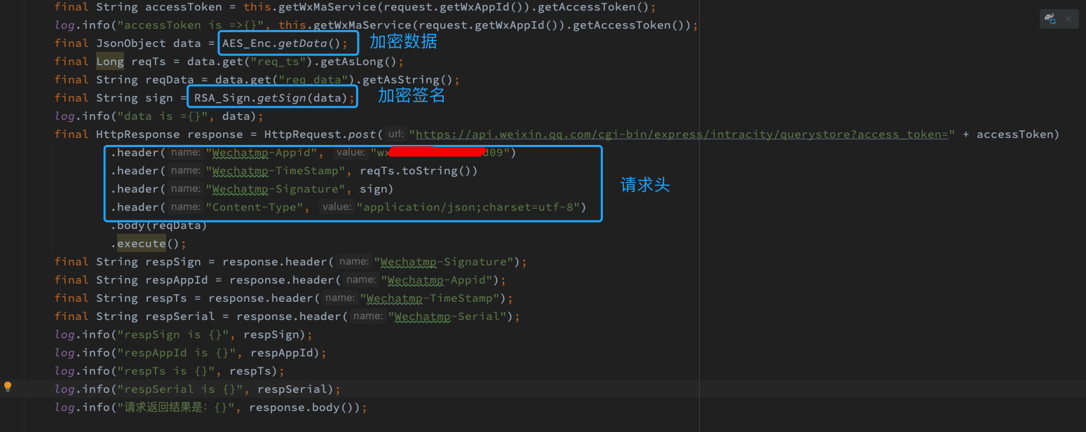 final HttpResponse response = HttpRequest.post("https://api.weixin.qq.com/cgi-bin/express/intracity/querystore?access_token=" + accessToken)
