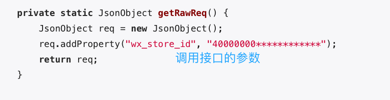 req.addProperty("wx_store_id", "40000000************");