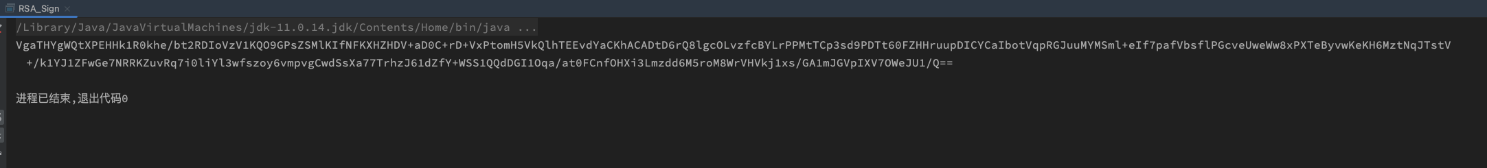 执行main方法打印出来的就是加密签名了,放到请求头里面,如果这个main方法执行错误了,就是你的私钥有问题了