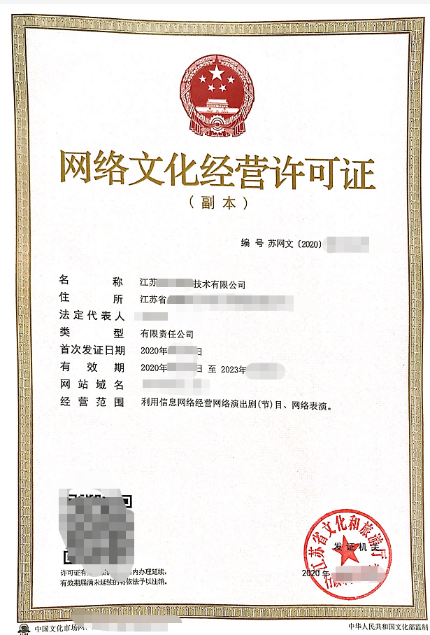 网络文化经营许可证(直播、动漫和音乐)