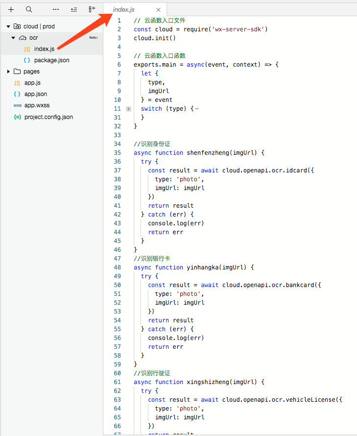 三,重头戏来了,识别的核心代码是下面这个云函数