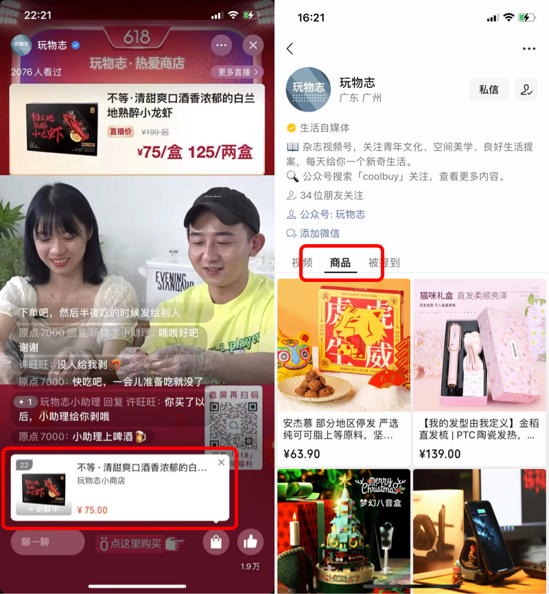 小程序与视频号打通,为企业提供了更多连接用户的场景和方式。相较于传统的文字内容,短视频更加轻松、有趣、易懂,而直播更能拉近企业品牌与用户之间的距离,促使企业借助视频与直播新载体,通过传递品牌价值、产品种草、直播带货等,将内容和服务结合,形成更强的品牌营销效果。