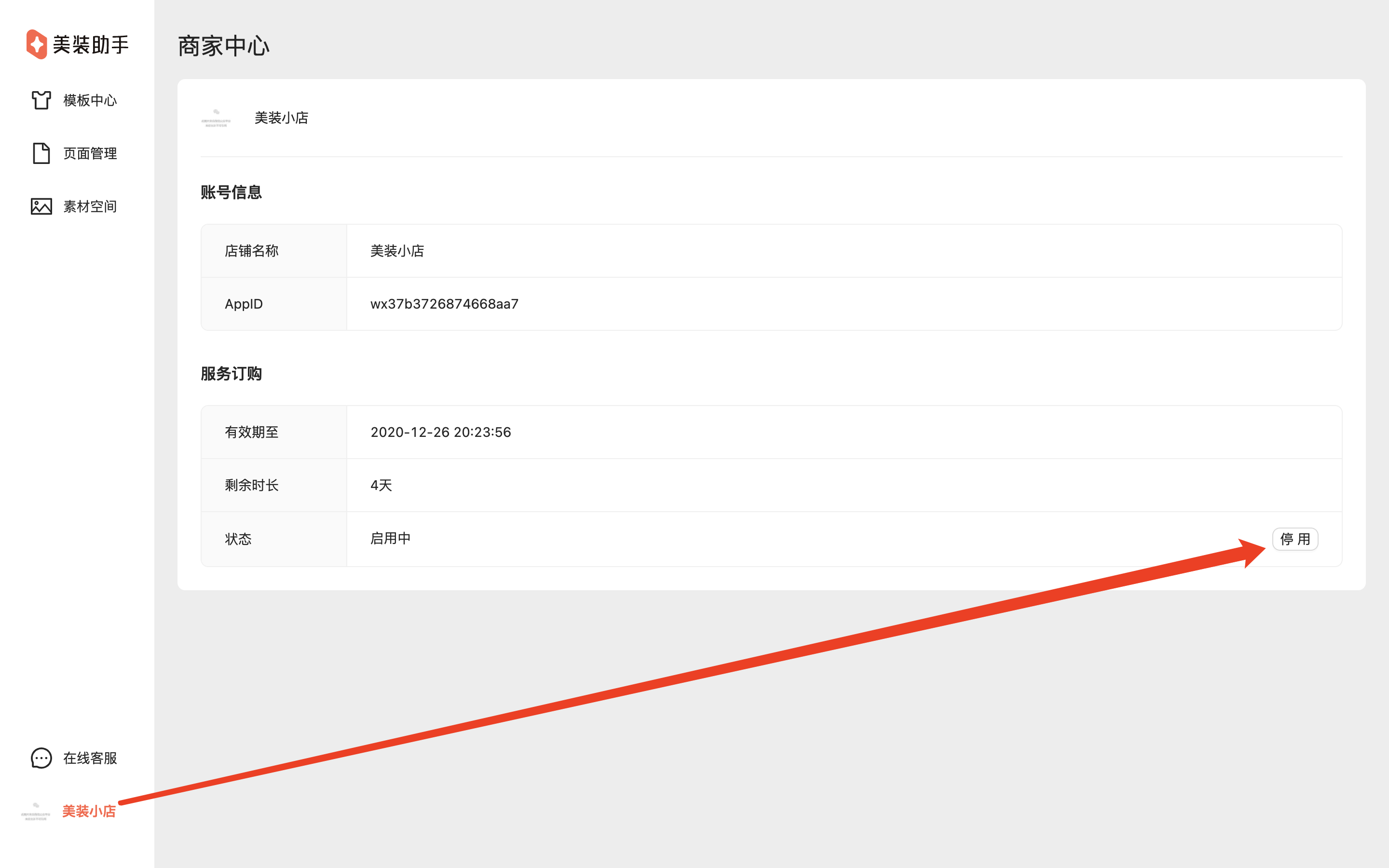 停用:会切换为小商店系统豆腐块式的货架,无任何装修内容。