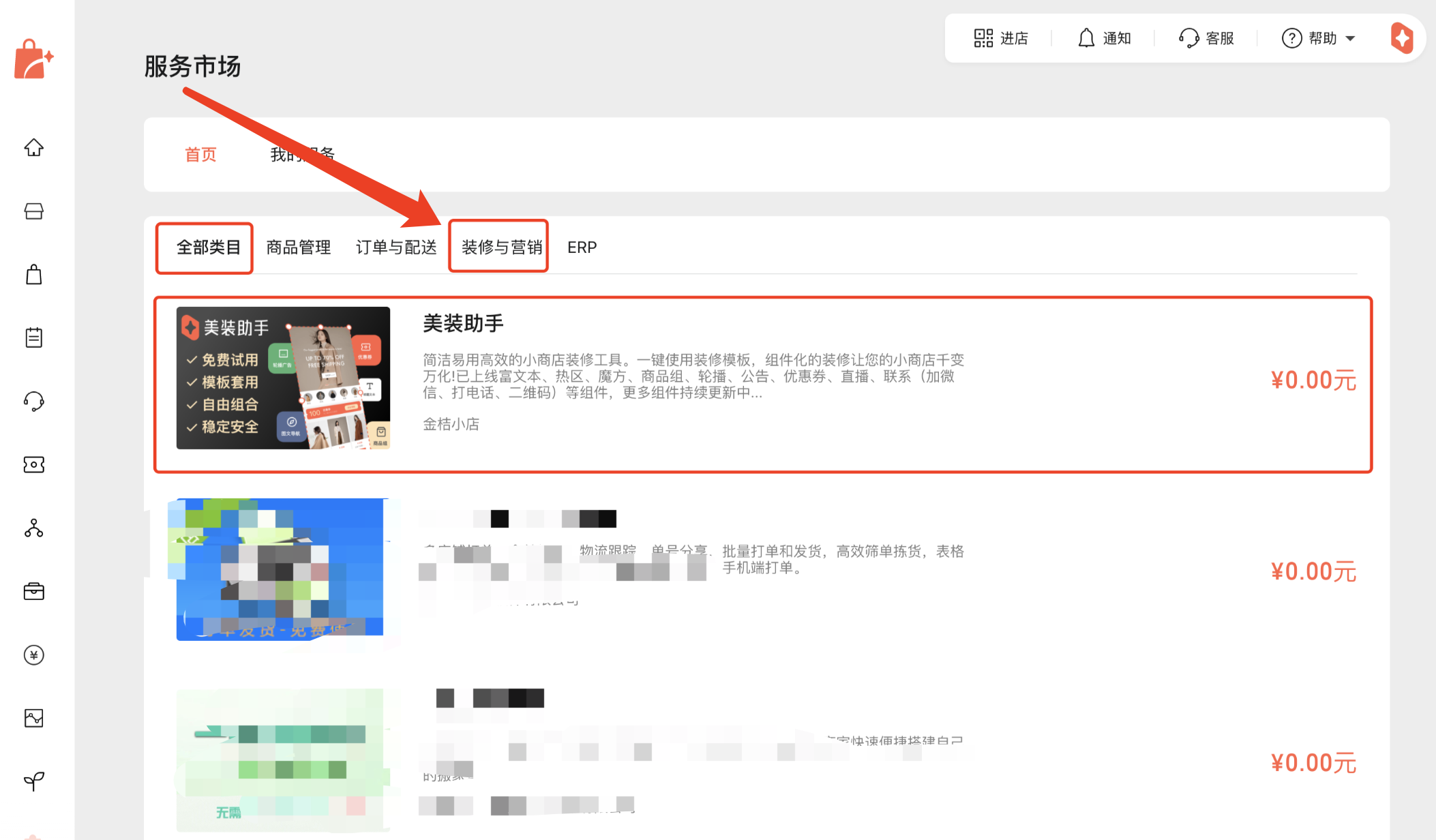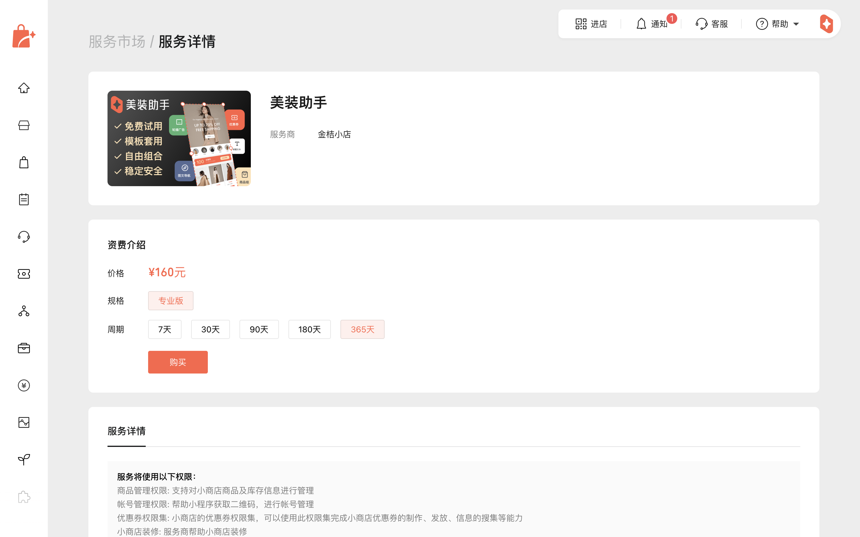 A:美装助手小商店装修服务商,以插件服务为商家提供装修模板和装修组件,实现更多个性化视觉营销和运营需求。