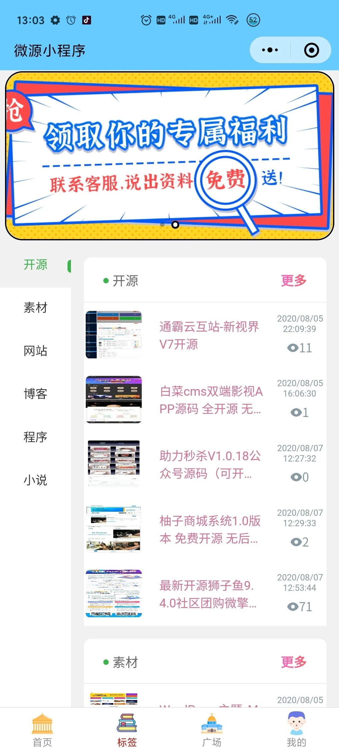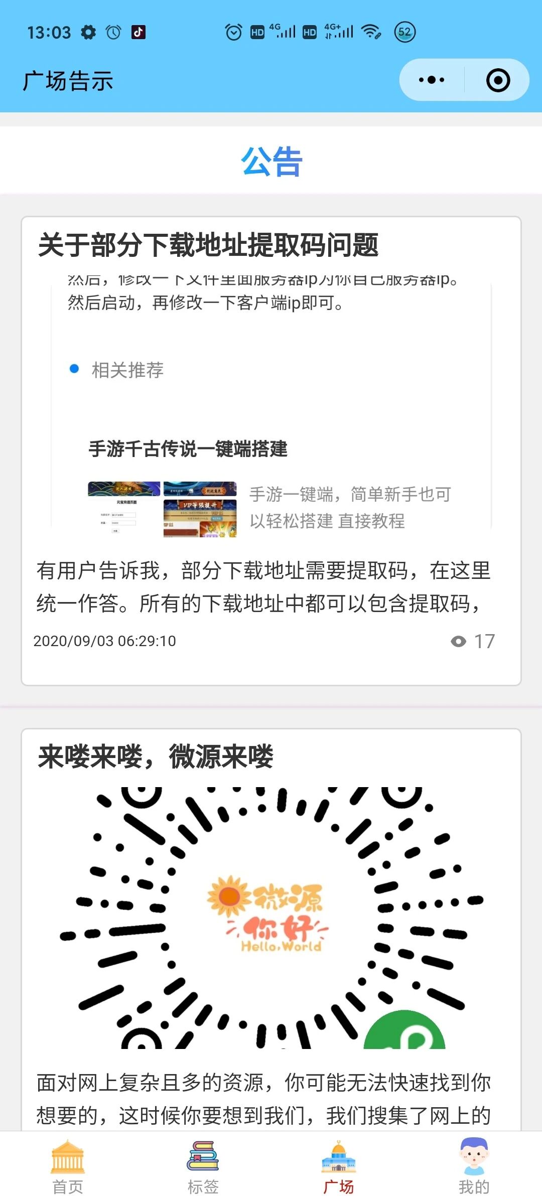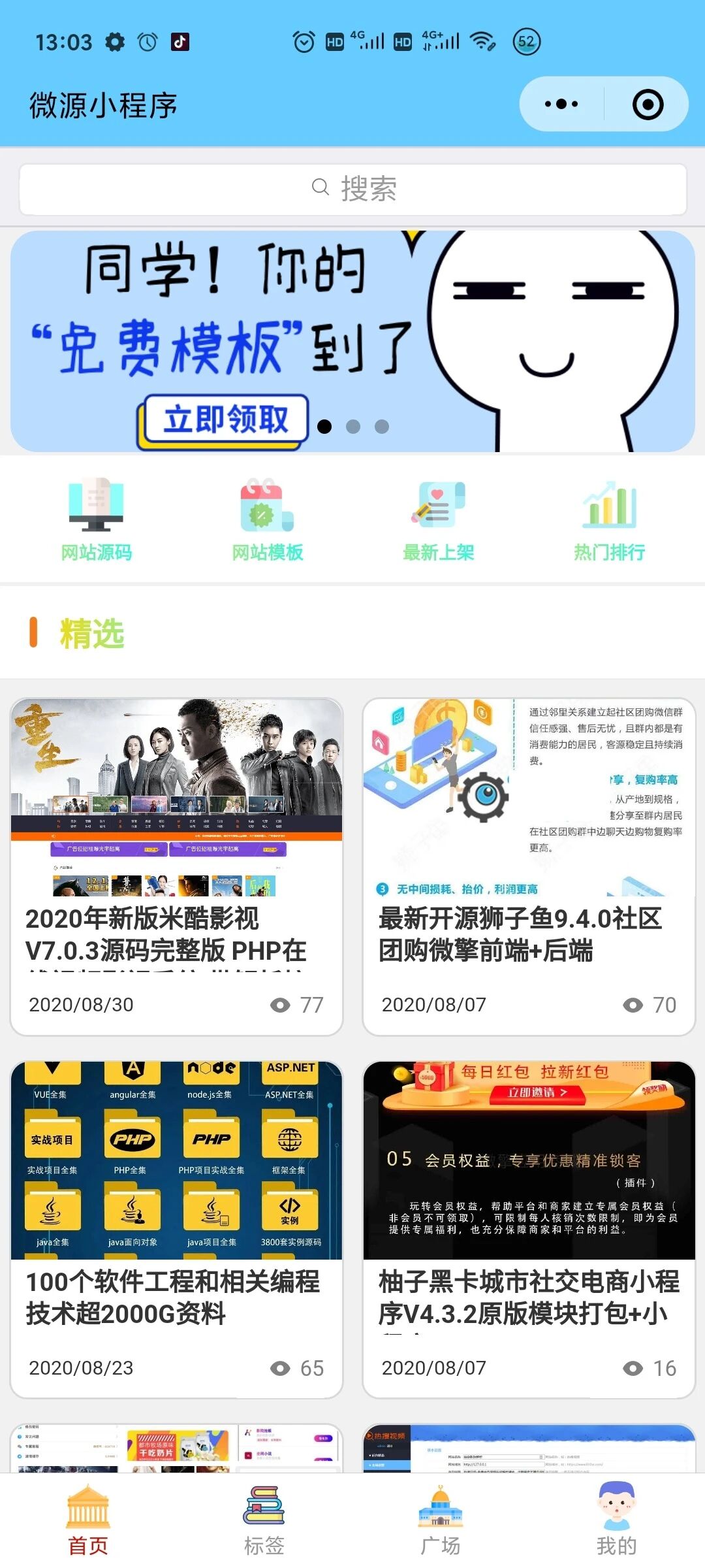微源库小程序就是微信资源库,为大家免费提供资源。这些资源主要是程序源码,还有少量的PDF文件,素材,资料等用户需求的(合法的)资源,通过主页的浏览,标签和分类,或者搜索,找出你想要的资源,获取下载地址