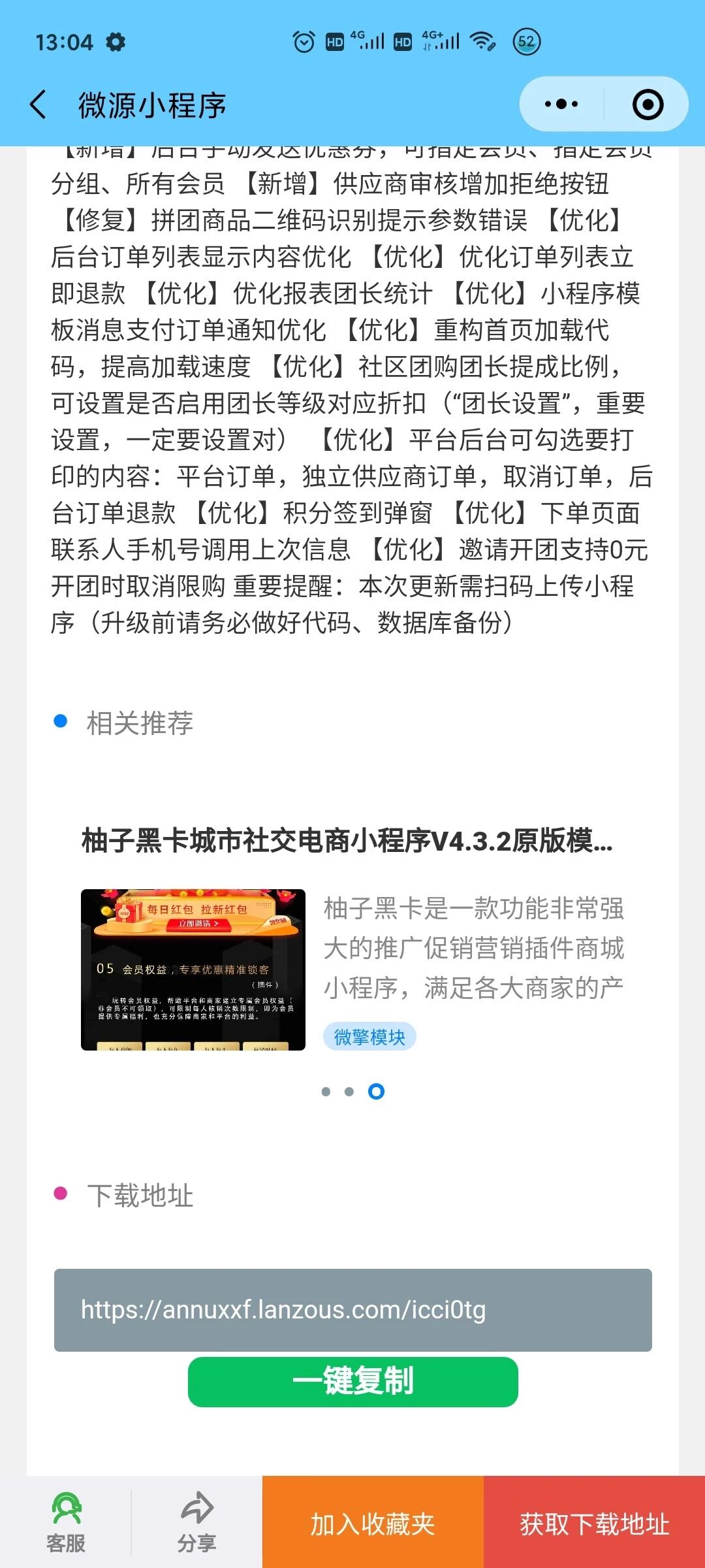 该小程序将免费资源下载地址提供给用户,用户还可以下载想要的资源文件