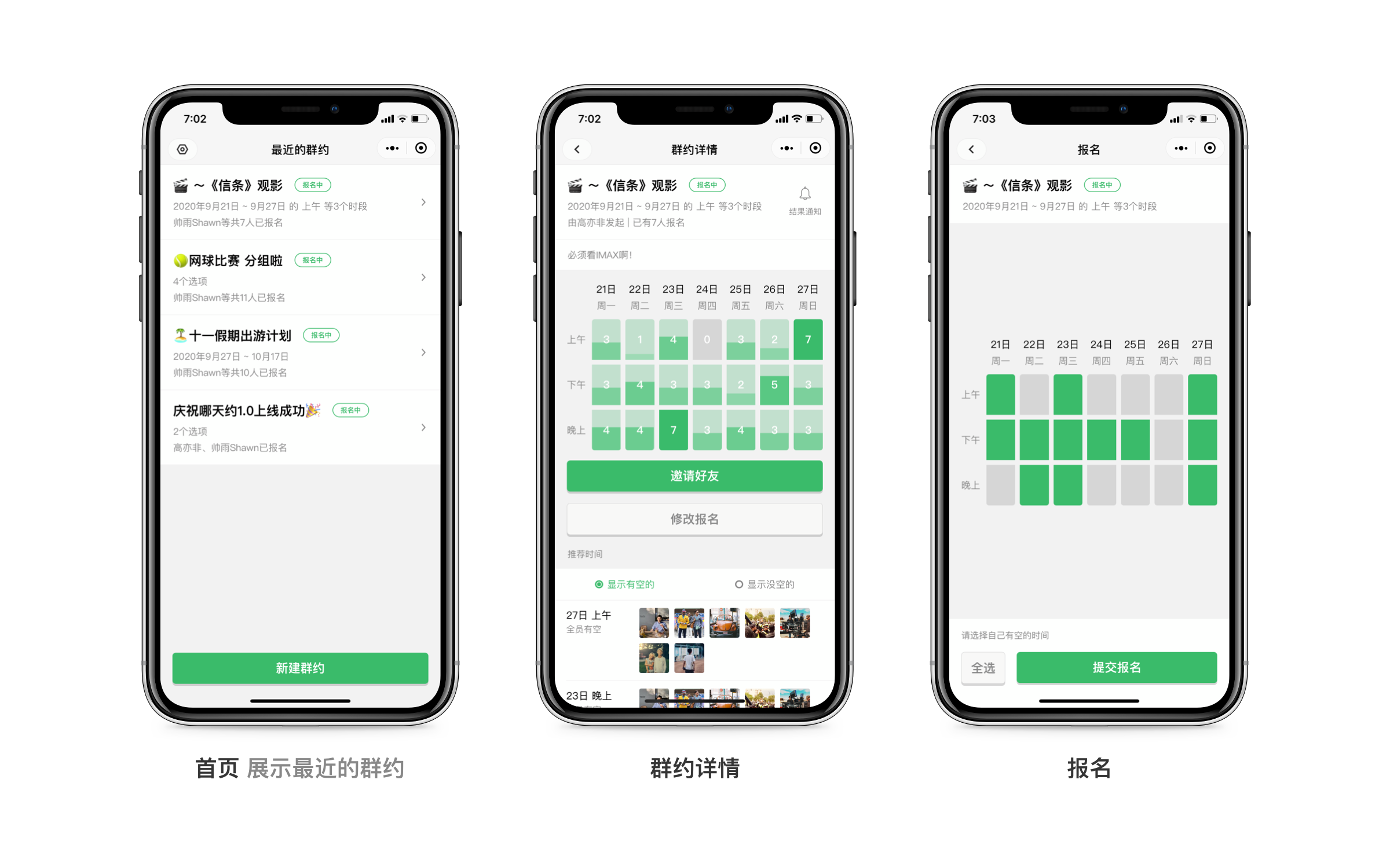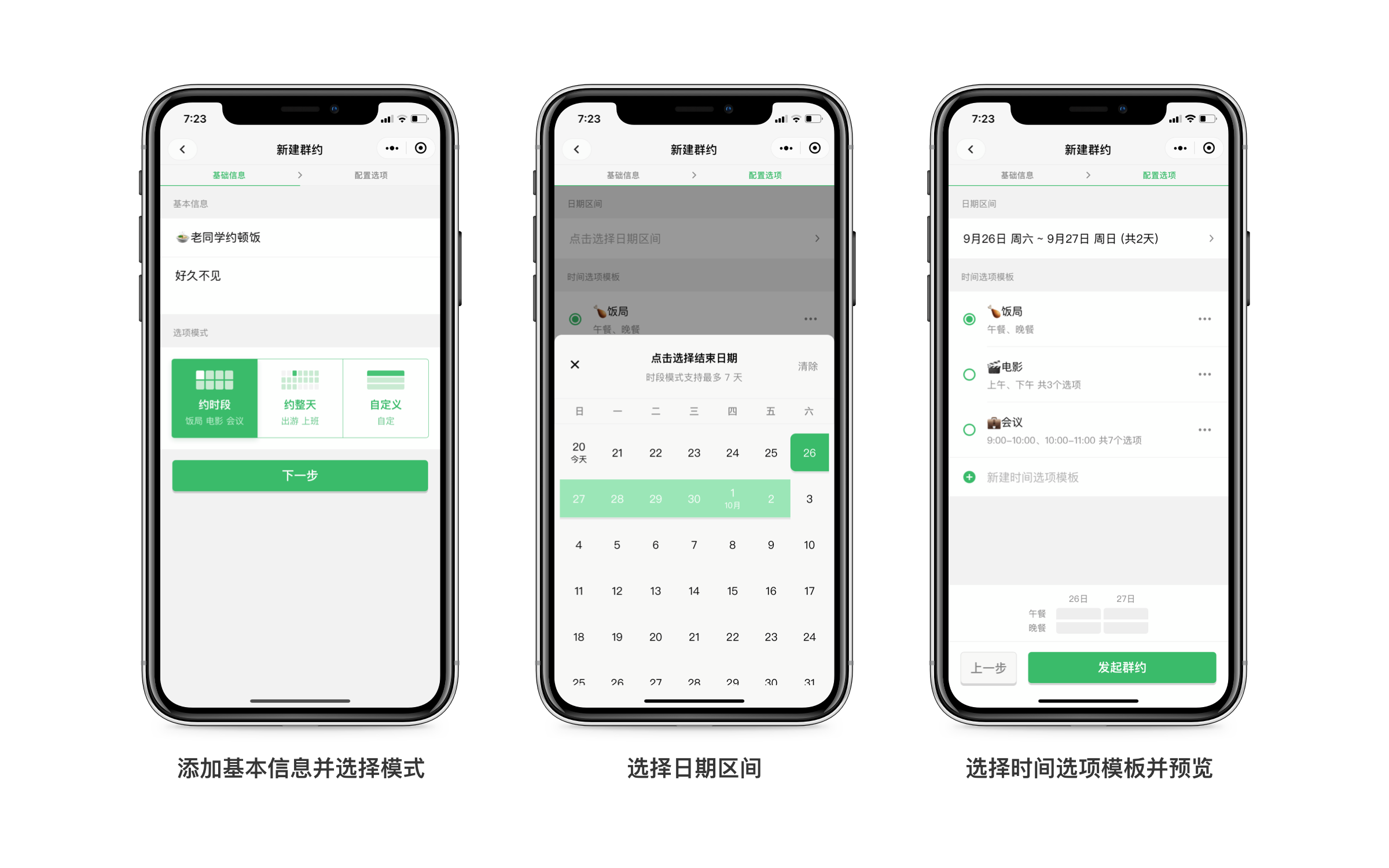 通过「哪天约」小程序,群约发起人可以根据不同的场景,发布群约报名,分享后,参与者可以选择自己的空闲时间进行报名,帮助发起人确定最佳群约时间。「哪天约」小程序帮助数千发起人,在会议协调、出游计划、约饭约玩等实际场景中,简化、可视化了时间选择和报名统计。这次的重大版本更新,不仅继承了广受好评的全方位产品功能,还进一步细化应用场景,带来「约时段」「约整天」和「自定义」三大模块,提供「实时刷新」「锁定选项」等优化功能,继续帮助用户高效的解决群约难题。
