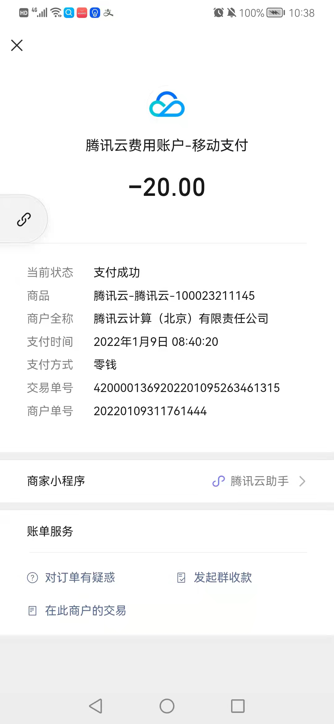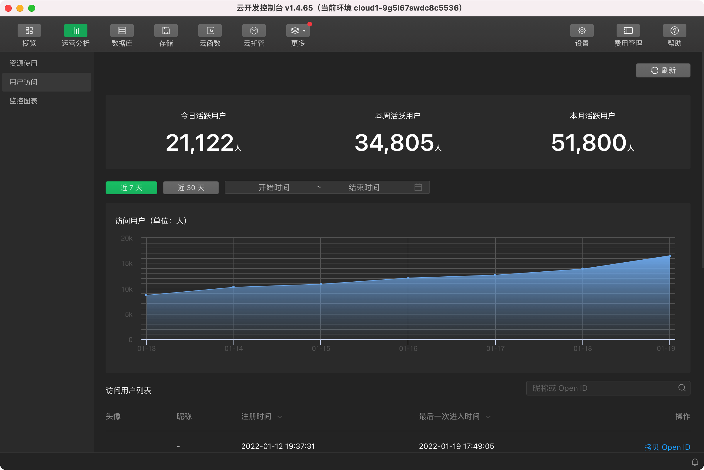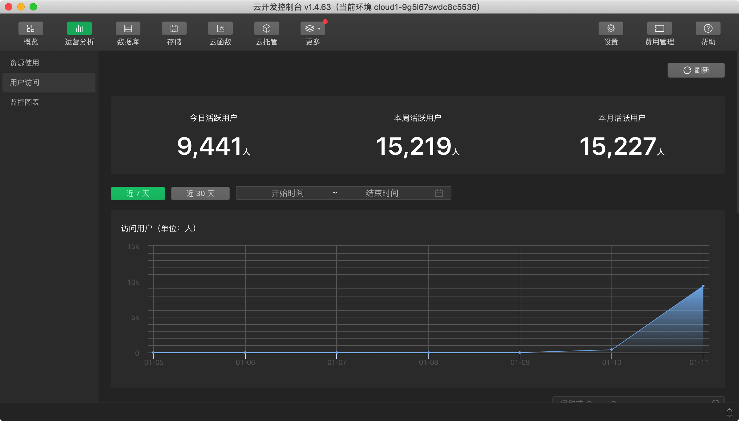 本次选用的是云开发的按量付费服务,考虑到日活能达到10000+,提前充值20元,以备不时之需