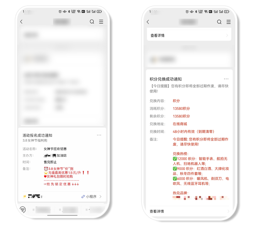 3月16日,“微信公众平台运营中心”发布公告,称模板消息场景中,部分公众号利用“积分”、“会员”、“活动”、“奖励”等模板下发广告营销推广相关的消息内容,诱导用户消费。对此将进行整改,主要针对以下2种: