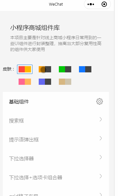 最近很久没有更新文章了,在开源一个商城UI组件库,将日常商城用到的一些组件整合打包整理出来,并且支持一键更换组件皮肤等商城常用的功能,供大家使用,组件库还在完善当中,后续会陆陆续续加上各种商城用到的酷炫功能,希望大家可以来一起维护。