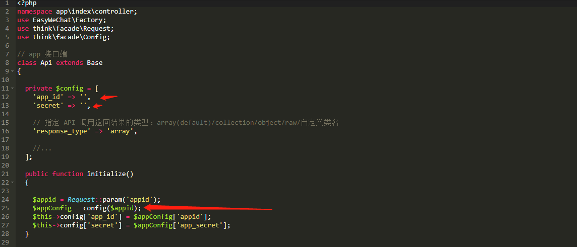 这时候我们根据appid 再去初始化 config 配置信息 给以后所有涉及 小程序api 调用的业务做 配置。