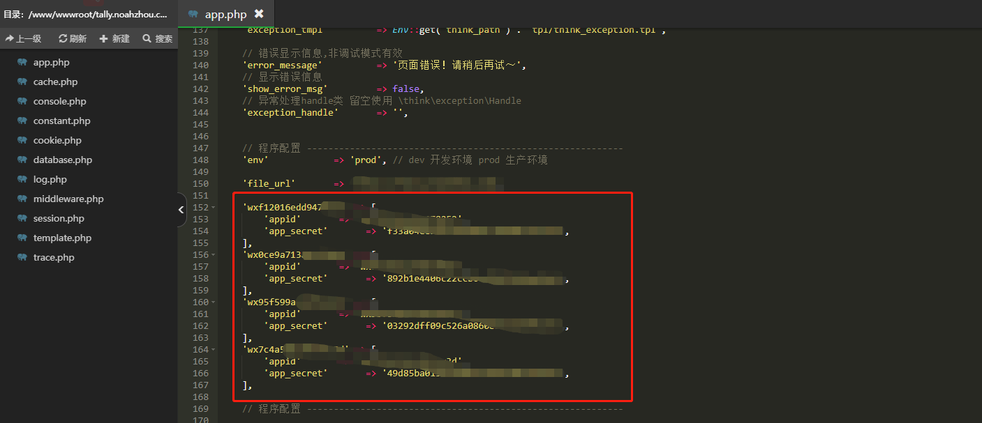 我先把所有小程序的 appid 和秘钥 在配置文件配置好: