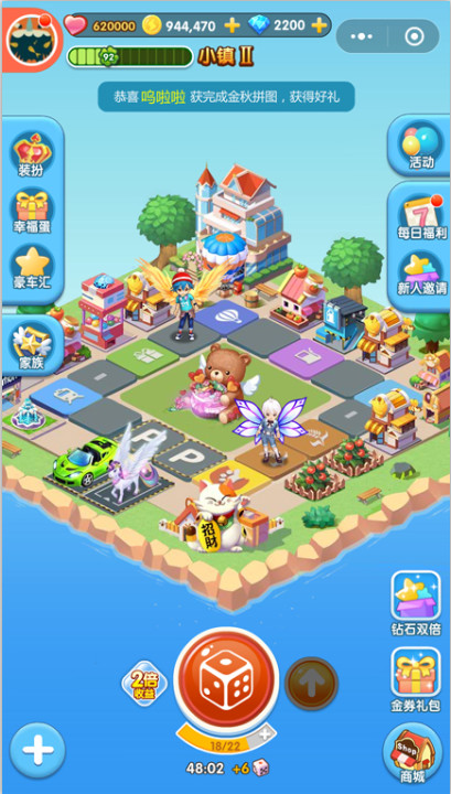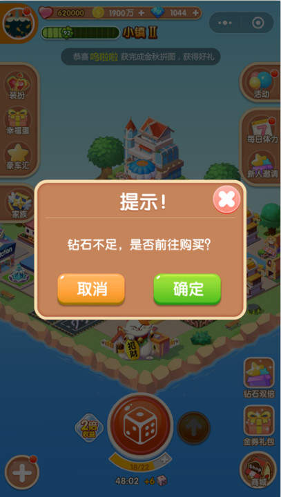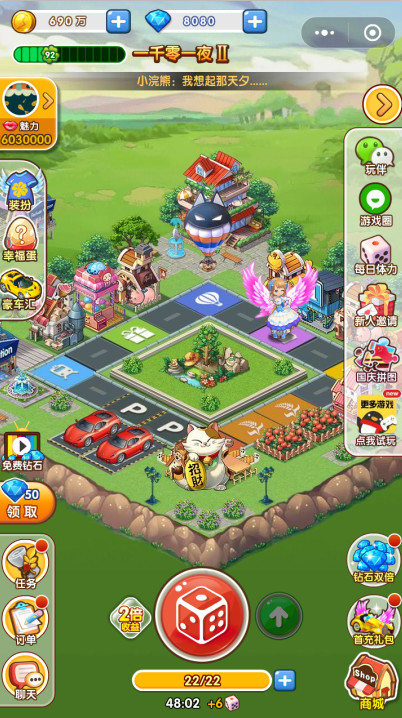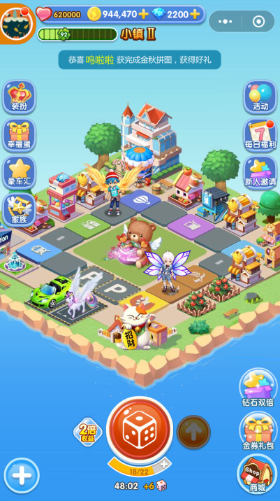 《麦兜环游世界》也做了简单的 UI 调整(左为改版前,右为改版后)——重新绘制了投骰按钮,简化了建造按钮,适当缩小了 icon 大小