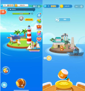 《海盗来了》UI 改版前后对比(左为改版前,右为改版后)