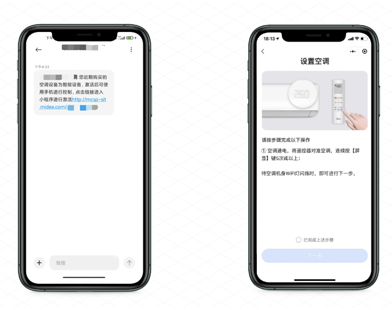 用户在收到货品时可以发送短信通知进行配网,使用短信拉起小程序能力直接进入设备配网流程,提升设备配网效率。