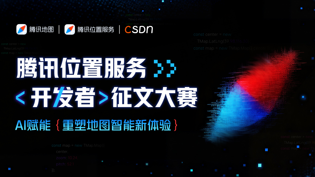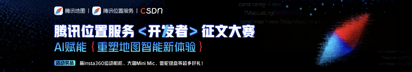 腾讯位置服务联合 CSDN 共同推出开发者征文大赛!无论你是希望用 AI 为地图交互带来全新体验,还是想用地理位置数据洞察商业潜力,亦或仅仅是刚入门、想试试如何用自然语言驱动地图 API,这里都是你的舞台。