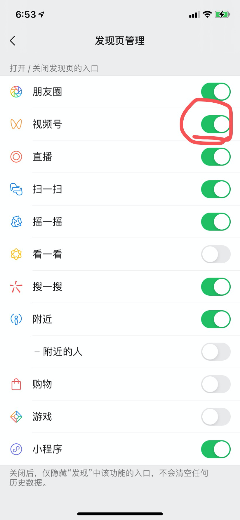 1-2、如果第一步没有,则打开微信-我-设置-通用-发现页管理,开启视频号,重复第一步操作