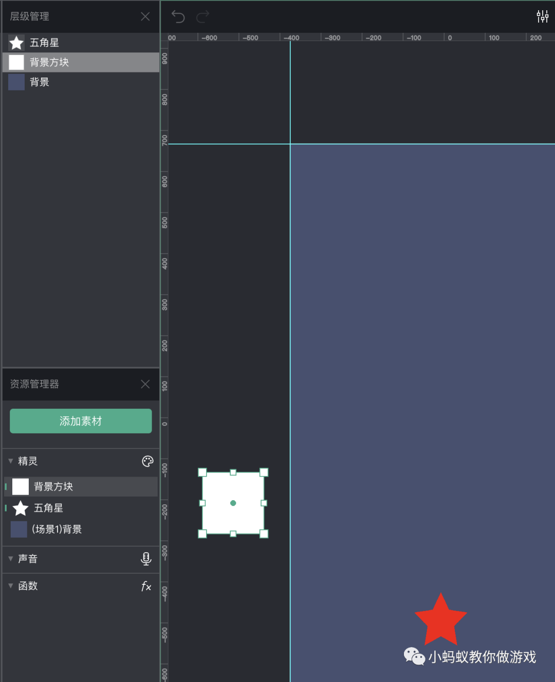 首先,我们准备两个素材,“背景方块”用于显示格子,“五角星”扮演的是可拖拽放置的精灵。