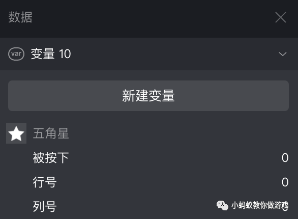 “行号”和“列号”用于记录星星当前所在的行列号,“被按下”这个变量用于记录当前星星是否被按住了。