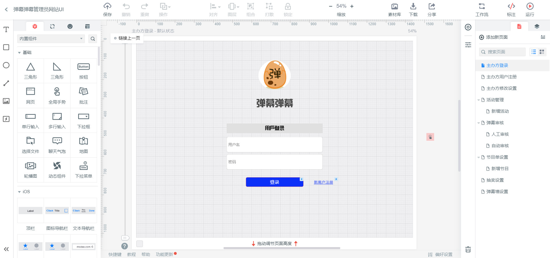 原型设计,也就是UI设计。我们团队使用的工具是墨刀。墨刀有着丰富的素材库,并且可以设计控件行为,方便团队成员理解交互过程。