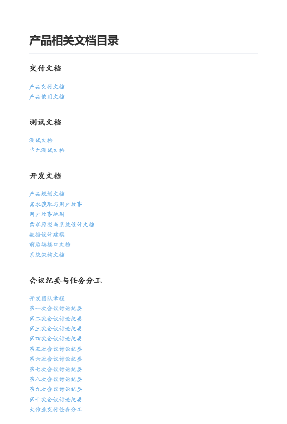 我们团队还维护了一个产品文档目录,这样每次要修改或查阅文档时,都有一个很便捷的入口。
