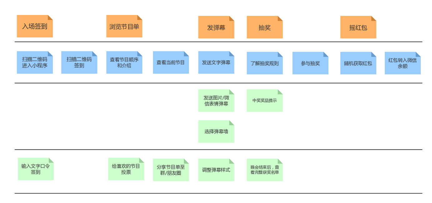 当我们有了产品规划文档之后,立项的过程还没有结束。因为这个文档只是根据自己团队的想法写成的,但是真正的用户会有成千甚至上万人,并不一定每个人都和团队内的成员想法相同。除此之外,市场上可能已经有一些类似的产品。所以我们必须要进行一个调查,明确其他可能的用户的需求以及现有市场上的产品提供的功能。这样的调查有助于我们跳出团队内固有的思维模式,催生出一些新的点子,同时也能避免无用功。在调查结束之后,我们获得了更多的用户需求。我们需要对需求进一步整理细化,写出用户故事(弹幕biubiu的需求获取与用户故事文档),并画出用户故事地图。