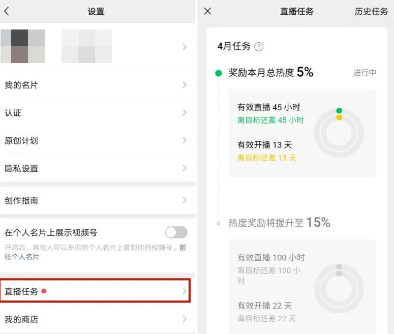 这个任务分两个阶段,视频号主播在完成有效直播后,可拿到自己直播间礼物热度 5%、15% 的额外奖励。